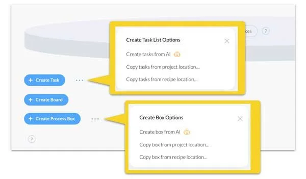 Empty Slice Options — When you create a project from scratch and start with an empty slice, the Create Task and the Create Process Box buttons now have options as shown below. Click the ellipses icon to display the popup with options:
