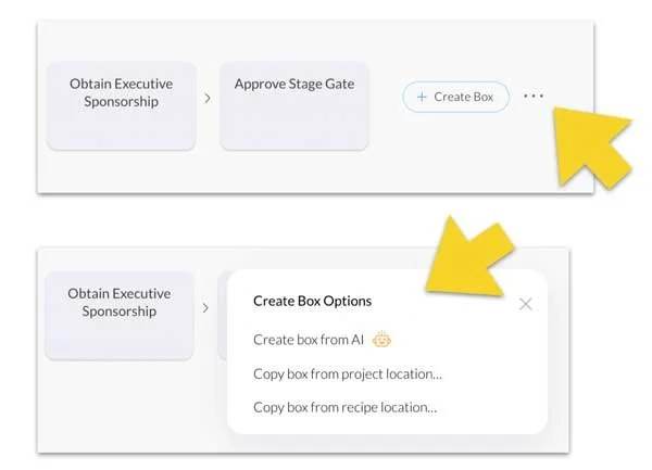 AI/Boxes — Added the “more” options button (ellipses icon) to right of create box button to access create from AI and copy from other location features as shown:
