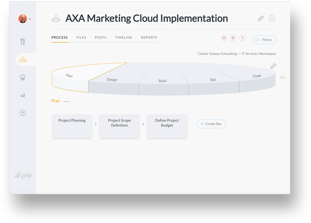 SOLUTION. Use Pie to land and expand accounts with better planning and execution. Your end project result then helps you become your clients’ go-to consultancy. This improves their business and it lowers your cost of sales.